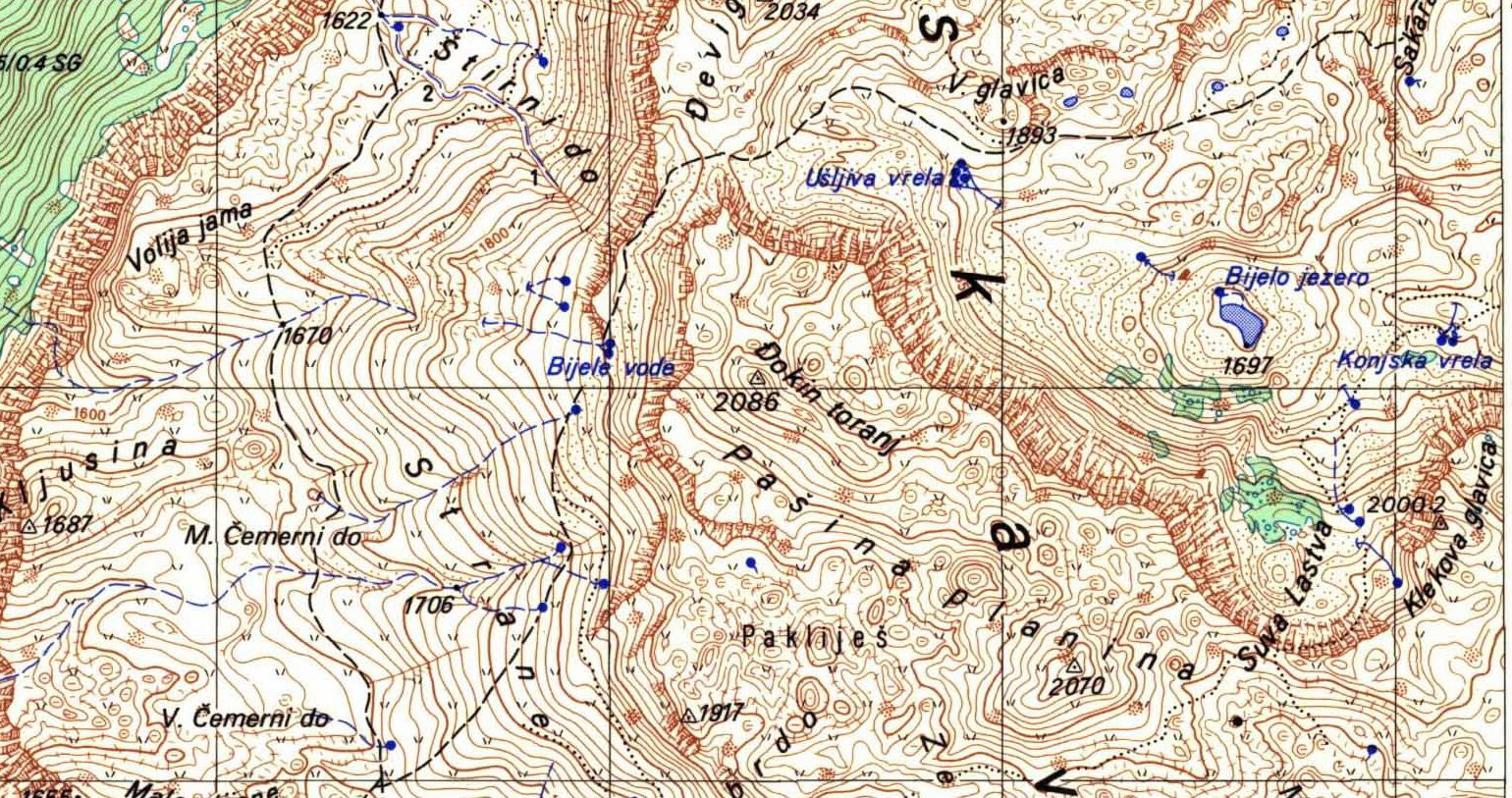 Početak geodetske službe na prostorima Bosne i Hercegovine veže se za razdoblje austrougarske uprave. Tadašnja vlast uspostavlja geodetsku službu sa zadatkom da organizira premjer teritorija, uspostavu katastra zemljišta i izradu kartografskih podloga. Bečki VGI (vojnogeografski institut) na temelju “francjozefske“ izmjere 1894. godine izradio je topografsku kartu BiH u razmjeri 1:75.000. Podatke o planinama, nazivu vrhova, spilja, jama, dolina, vrela, potoka i jezera geometri su prikupljali kod mještana u planinskim selima. Nadmorske visine mjerene tadašnjim instrumentima ne razlikuju se puno od današnjih mjerenja. Na nekim kartama načinjene su greške u nazivu – toponimu (grč. tópos = mjesto + ónoma = ime). Ovakvih je grešaka bilo i kasnije skoro na svim dosadašnjim izdanjima karata. Ispravka podataka na topografskim kartama je skup posao i za bogatije zemlje od Bosne i Hercegovine.