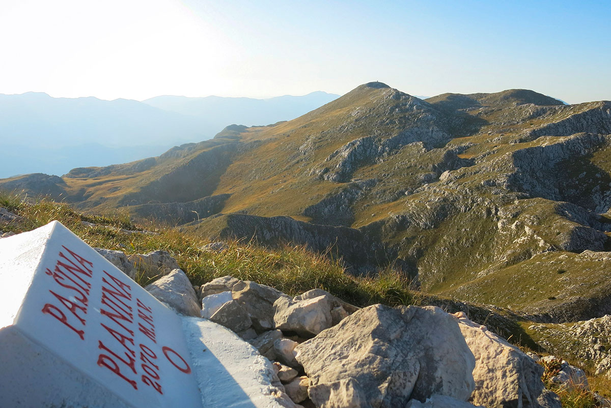 Naslovna slika: Treskavica, vrh Ćaba (2086 m/nv) i vrtače na Pakliješu – pogled sa Pašine planine (2070 m/nv)