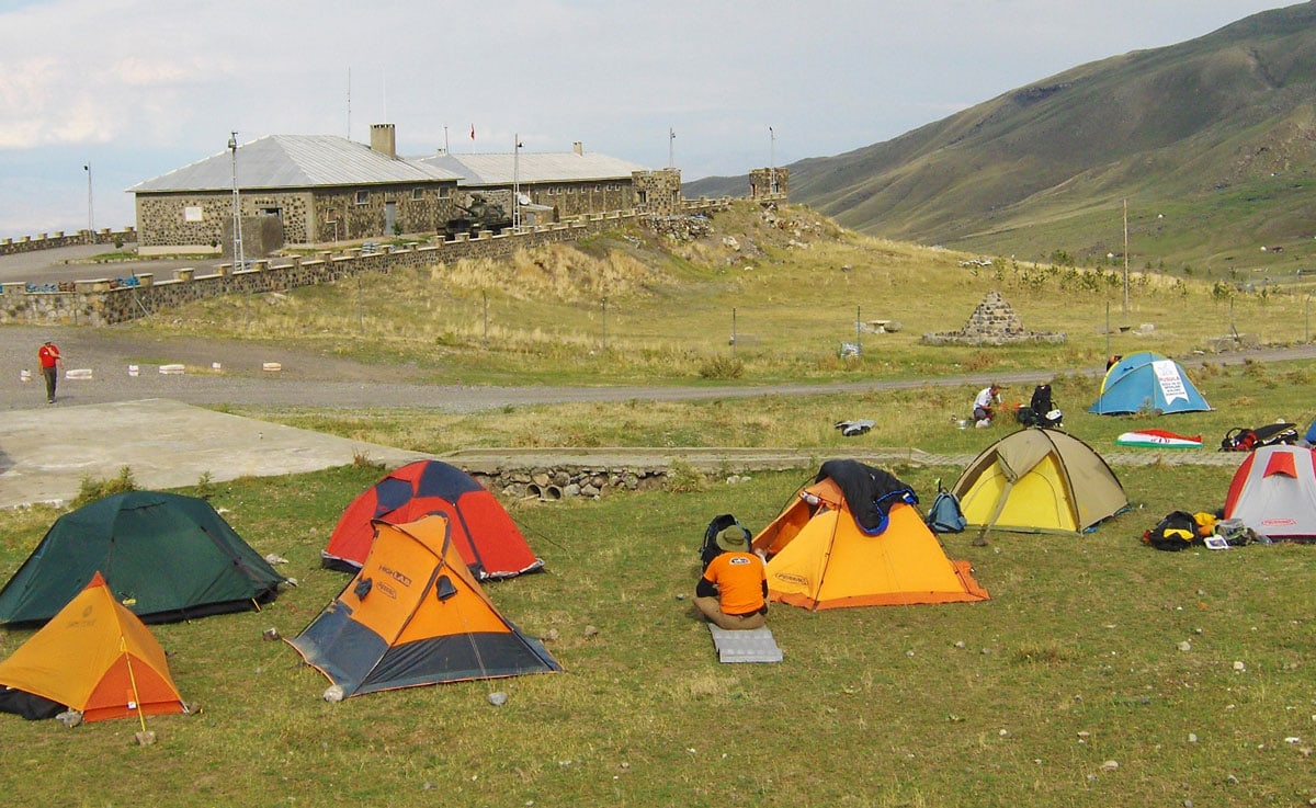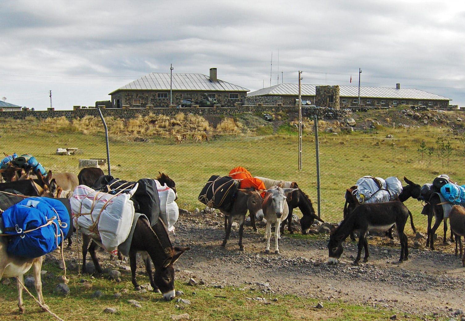U 14,00 h nakon pređenih 35 km puta stižemo do kasarne žandarmerije na Korhan platou. U neposrednoj blizini kasarne podižemo kamp 1 (1950 m/nv). Pošto smo podigli šatore i smjestili se odlazimo do kasarne u čijem je krugu parkiran tenk. Upoznajemo se sa žandarima koji će sutra sa nama ići do kampa 2. Ljubazno nas dočekuju i nude flaširanu vodu za piće i napominju da svi učesnici pohoda mogu koristiti toalet, tuševe, punjenje baterija, kupovinu namirnica u vojničkoj kantini i dr. Komandir kasarne je mlađi oficir porijeklom iz Bosne i govori odlično našim jezikom. Kaže njegov djed i nana u Tursku su došli nakon Prvog svjetskog rata, a on i i njegovi roditelji, otac i majka su rođeni ovdje. Bio je u turističkoj posjeti Bosni i Hercegovini, obišao Travnik, Sarajevo i Mostar, oduševljen je našom prirodom i ljepotom djevojaka. Odobrio nam je odlazak u šatorsko naselje kurdskih nomada, u blizini kasarne.