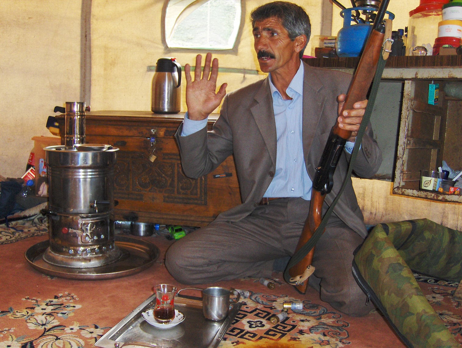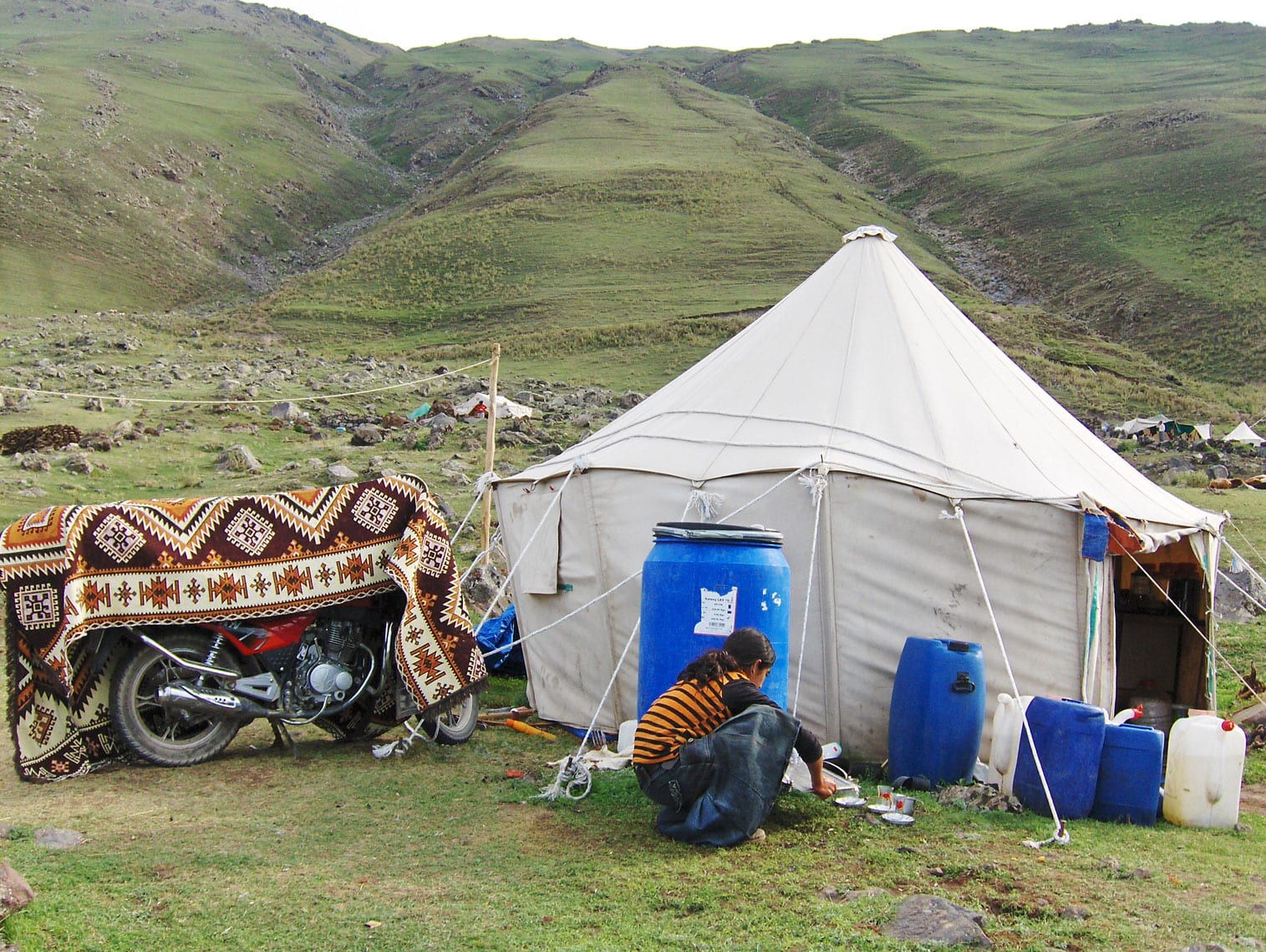 Predvečer Ramiz, Bojan i ja odlazimo kod nomada gdje upoznajemo starješinu naselja Ahmeta Nasa koji nas poziva da budemo gosti u njegovom šatoru (jurta). Kod šatora je parkiran njegov novi motocikl japanske proizvodnje. Koliko mu ovaj motocikl znači govori i to što ga je prekrio lijepim ćilimom iz Tebriza. Na livadi ispred je užetom privezan divan konj i mirno pase travu – još jedan Ahmetov ljubimac. Na ulazu šatora srdačno nas dočekuje Ahmetova obitelj, supruga, dva sina i dvije kćerke. Starija kćerka pomaže nam da se lakše sporazumjevamo pomoću njenog džepnog elektronskog prevodioca. Sjedamo na pod zastrt ćilimom dok nam Ahmet toči vruć čaj iz samovara i slušamo njegovu priču o mukotrpnom životu kurdskih nomada. Na naš upit koliko je puta bio na vrhu Ararata, oči su mu radosno zasjale? Kaže bio je desetak puta i vodio planinare – strance. Ponosno pokazuje dvogled, dar jednog njemačkog planinara kojeg je vodio na vrh. Nastavak razgovora teče uz večeru, naime domaćica je za jelo spremila vruće somune, ovčiji sir, crne masline i kiselo mlijeko. Pitali smo Ahmeta ima li divljih zvijeri na Araratu, ide li u lov? Hitro je skočio i donio svoju lovačku pušku te nam pokazao kako vješto njome rukuje. Sa pripovjedačem kakav je Ahmet, pun zanimljivih priča, sjedili bi do rane zore ali nas je umor i pospanost natjerala da krenemo ranije u kamp na zasluženi počinak.