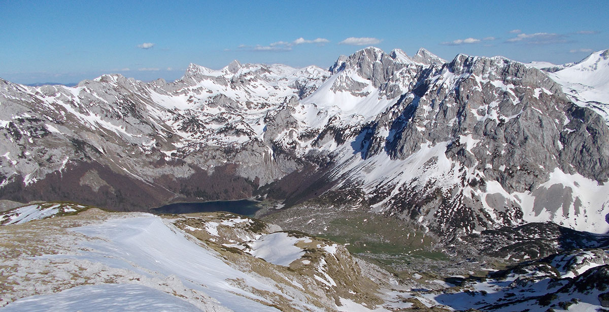 Naslovna slika: Trnovačko jezero (1513 m/nv). Naslici krajnje lijevo vidi se najviši vrh BiH – Maglić (2386 m/nv)