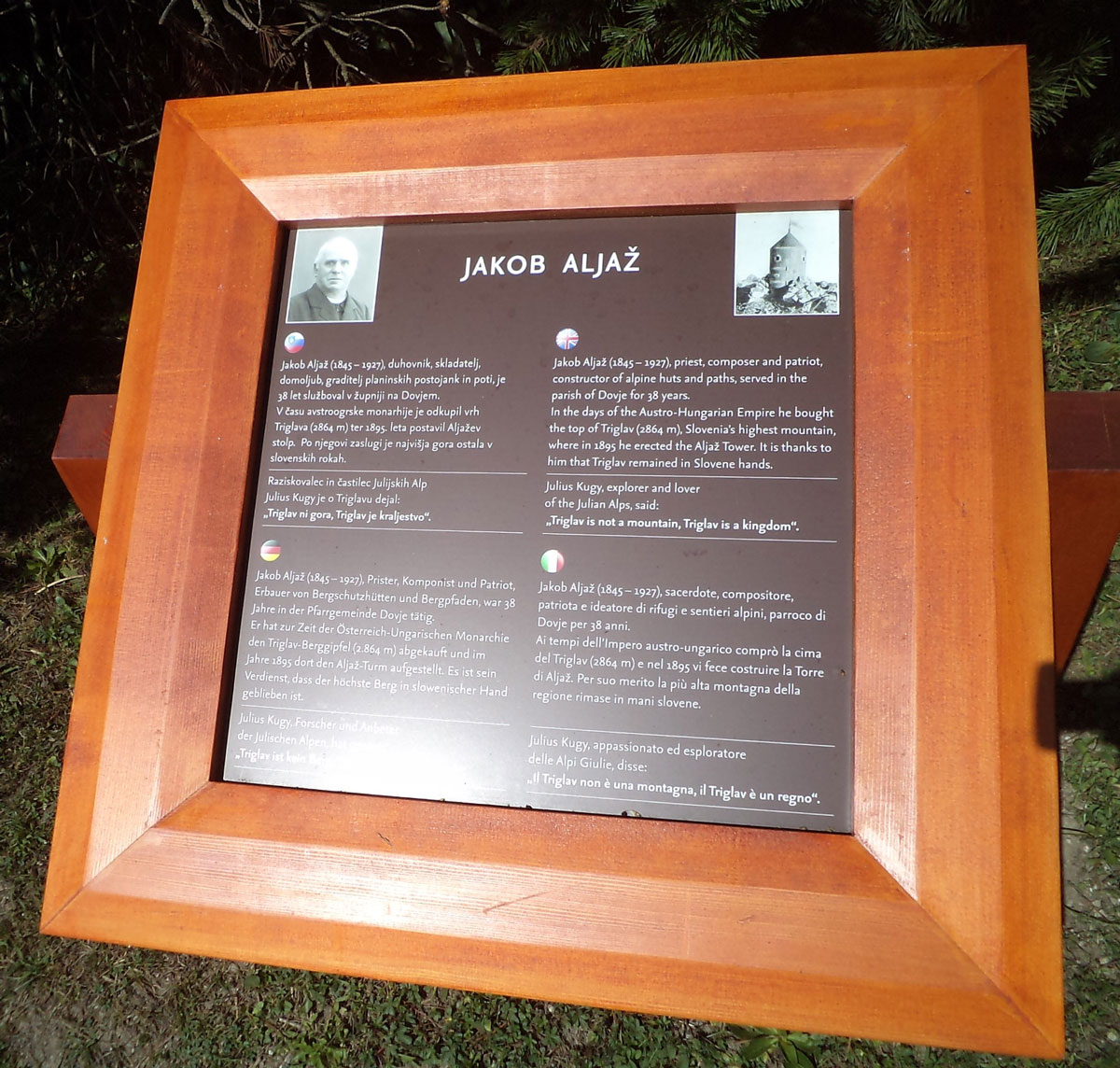 Slovenci su se dugo godina borili da im austrijanske vlasti dozvole osnivanje nacionalnog planinarskog društva, a onda su se morali izboriti i za to da Triglav bude priznat kao slovenska planina. Ideja svećenika Jakoba Aljaža da se na najvišem tjemenu Triglava postavi limeno sklonište konačno se ostvarila u aprilu 1895. godine kada je od općine Dovje u Mojstrani kupio “vrh” Velikog Triglava, odnosno 16 četvornih metara zemljišta i zajedno sa prijateljima i pomagačima postavio malo limeno sklonište napravljeno od debelih pocinkanih ploča. Majstorske radove je predvodio Anton Belec koji je sa njegovim pomoćnicima postavio sklonište na vrhu Triglava. Belec je prvo predstavio sklonište u blizini svoje radionice u Šentvidu, zatim je razmontirano i vlakom prevezeno u Gorenjsku, a nosači su potom dijelove skloništa teške blizu 20 kilograma odnijeli na vrh Triglava. Završni radovi na postavljanju skloništa su trajali pet sati i okončani 7. augusta 1895. godine. Ovaj datum je postao zvanični praznik općine Kranjska Gora.