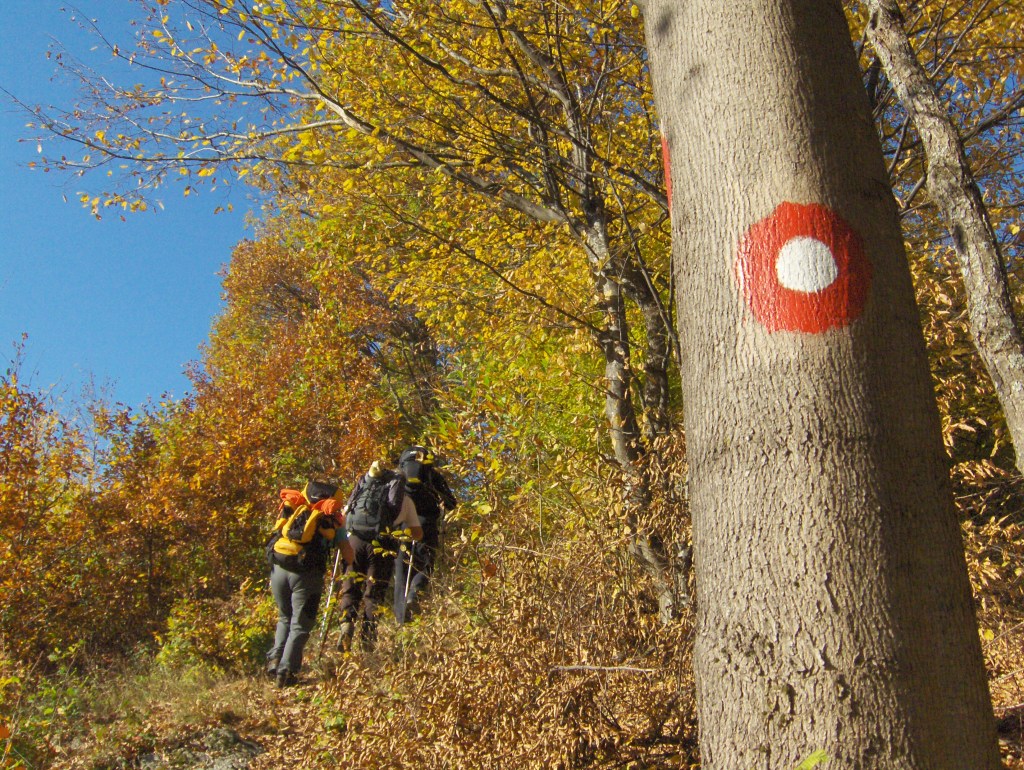 Markacije na stazama su crveno-bijeli krugovi ili crte na stablima drveća, kamenu i stijenama. Okrugla oznaka predstavlja temeljnu oznaku na stazi. Sastoji se od bijelog kruga prečnika 6 cm i crvenog kruga oko bijelog kruga širokog 3 cm, tako da je vanjski prečnik kruga markacije 12 cm. Ovakva vrsta oznake u šumskom području se postavlja na stablima drveća u visini očiju (od 150-180 cm) po mogućnosti na desnoj strani staze. Na otvorenom terenu izvan šumskog područja na livadama/pašnjaku markacija se postavlja na uočljivom kamenju i stijenama. Oznaka može biti okrugla ili crta, vodoravna ili kosa. Ova druga vrsta oznake se sastoji od dvije crvene crte dužine od 15-20 cm, prečnika 3 cm, te bijele između, prečnika 3 cm, tako da je vanjski prečnik linije oznake 9 cm.