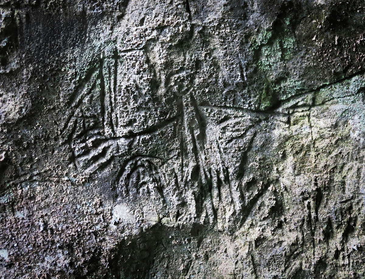 Izvjesni elementi na ovim crtežima ukazuju na njihovu srednjovjekovnu provenijenciju. Između likovnih predodžbi moguće je jasnije izdvojiti tri tipa: konjanike, stojeće figure i životinje podobne jelenima. Posebno su zanimljivi lik žene i krug pored nje – simbol sunca. Za ovaj crtež se pretpostavlja da je star oko 3000 godina.