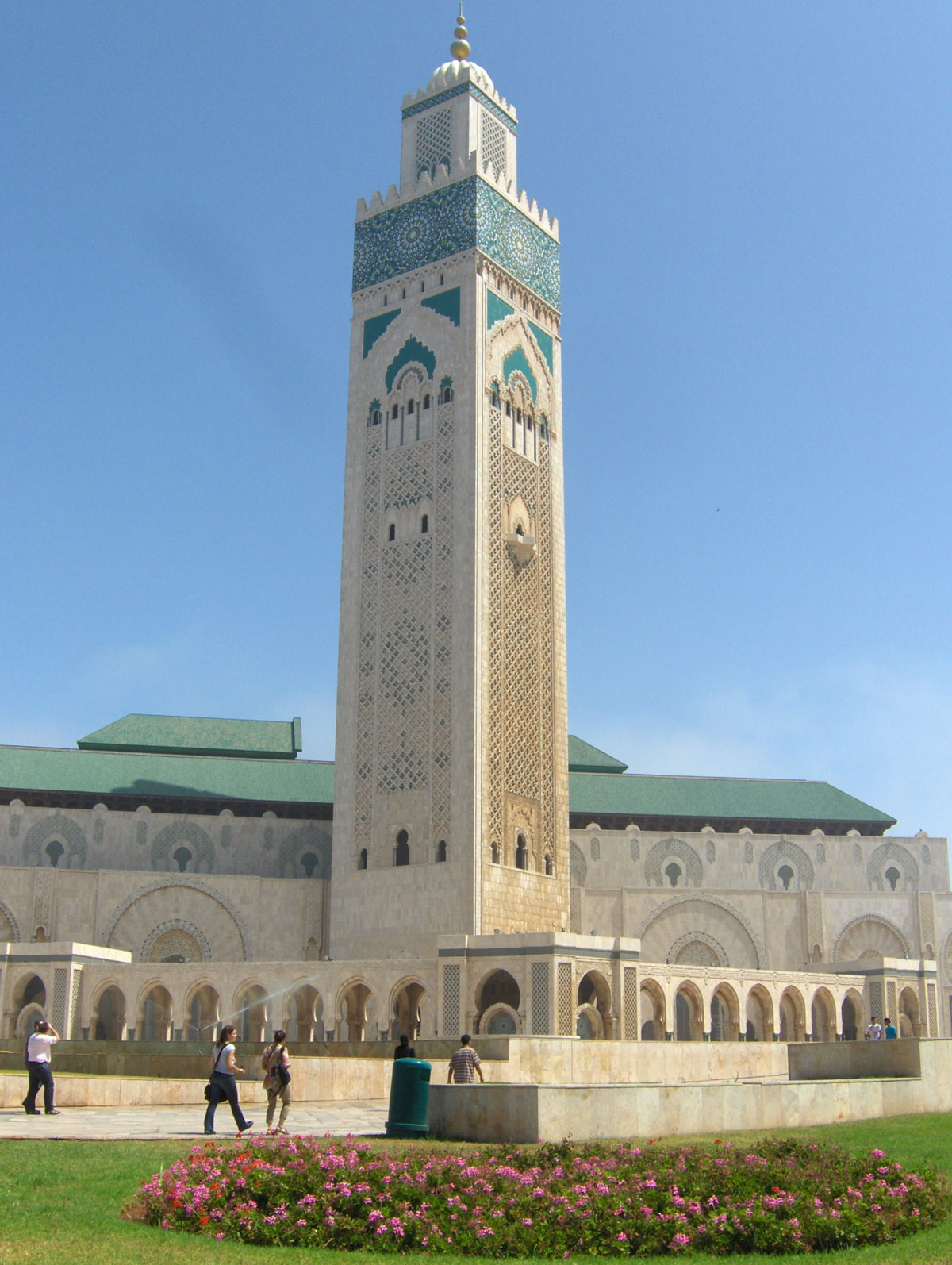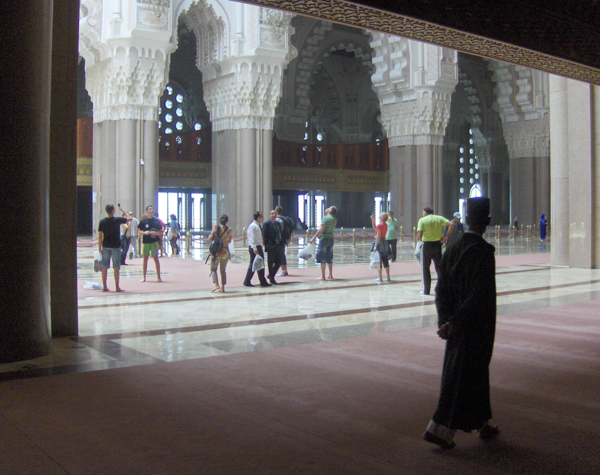 Glavna atrakcija Kazablanke je Džamija Hassan II, remek djelo arhitekture 20. stoljeća. Po veličini je druga najveća džamija na svijetu. Džamiju je projektovao francuski arhitekta Michel Pinseau. Posvećena je marokanskom kralju Hassanu II i trebala je biti završena za njegov 60 rođendan (1989.) međutim izgradnja džamije je potrajala 6 godina (1987-1993.) i u njoj je učestvovalo ukupno 10.000 radnika, zanatlija, umjetnika i stručnjaka svih profila. Smještena je na ogromnom platou kojeg zapljuskuju vode Atlantika. Ono što pada svakom posjetiocu u oči je impresivni minaret najvisočiji na svijetu, visok 240 metara, koji dominira s bilo koje tačke kada se posmatra i odličan je orijentir za kretanje gradom. Džamija može da primi 25.000 a u dvorištu još 80.000 vjernika. Spoj je tradicionalnog marokanskog stila gradnje i savremenih arhitektonskih inovacija. Izgrađena je aseizmički, sa grijanjem u podovima, električnim otvaranjem vrata i pokretnim krovom centralne kupole. Unutrašnjost džamije se može razgledati isključivo u pratnji stručnog vodiča. Osim u umjetničkoj obradi zidova, stubova, podova i tavanica uživali smo u dubokoj hladovini jer je vani bilo prevruće, a mnogobrojni šadrvani (fontane) pružili su nam dodatno osvježenje.