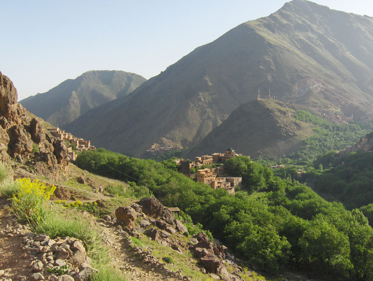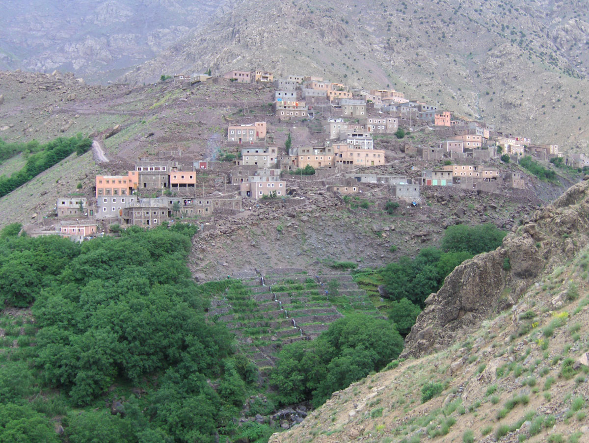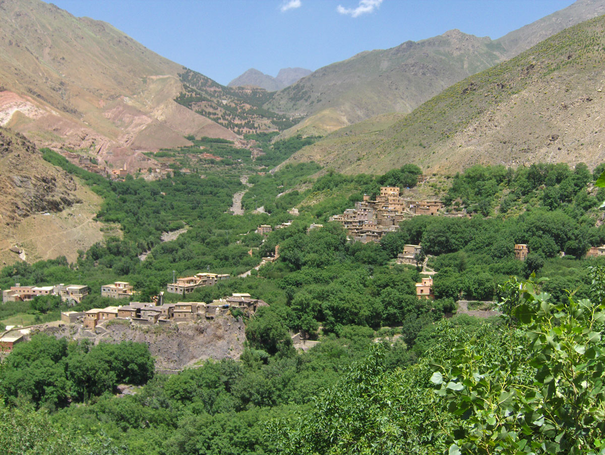 Iako su ove planine divlje i okrutne, na sjeverozapadnoj strani Visokog Atlasa su mnoga sela plemena Berbera, gdje svoje zemljane kuće podižu na strmim obroncima, vrijedno obrađujući terasaste bašte i voćnjake. Stanovništvo u selima bavi se zemljoradnjom i stočarstvom, prodajom rukotvorina i suvenira, prevozom planinarske opreme mulama, a postoje i privatne gostinske kuće koje nude pansionsku uslugu u udobnim uvjetima.