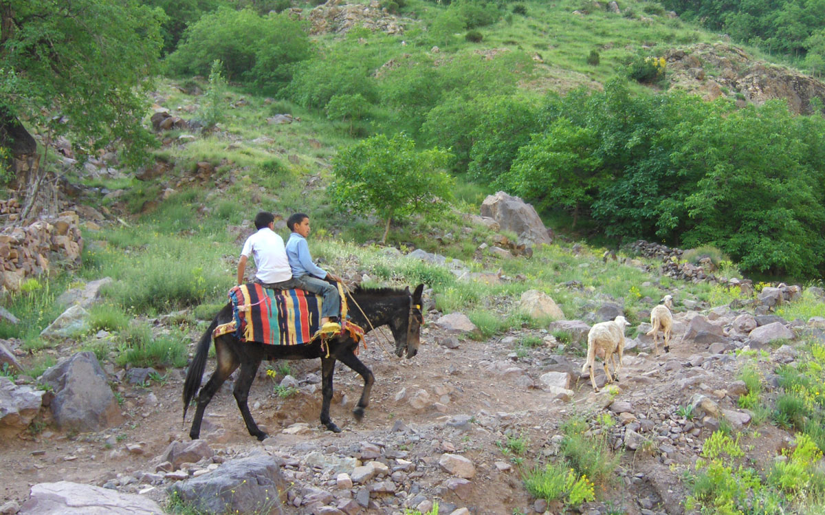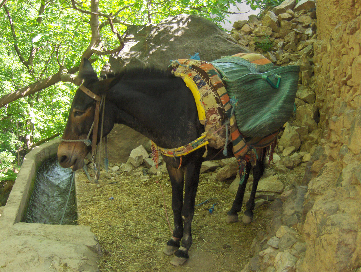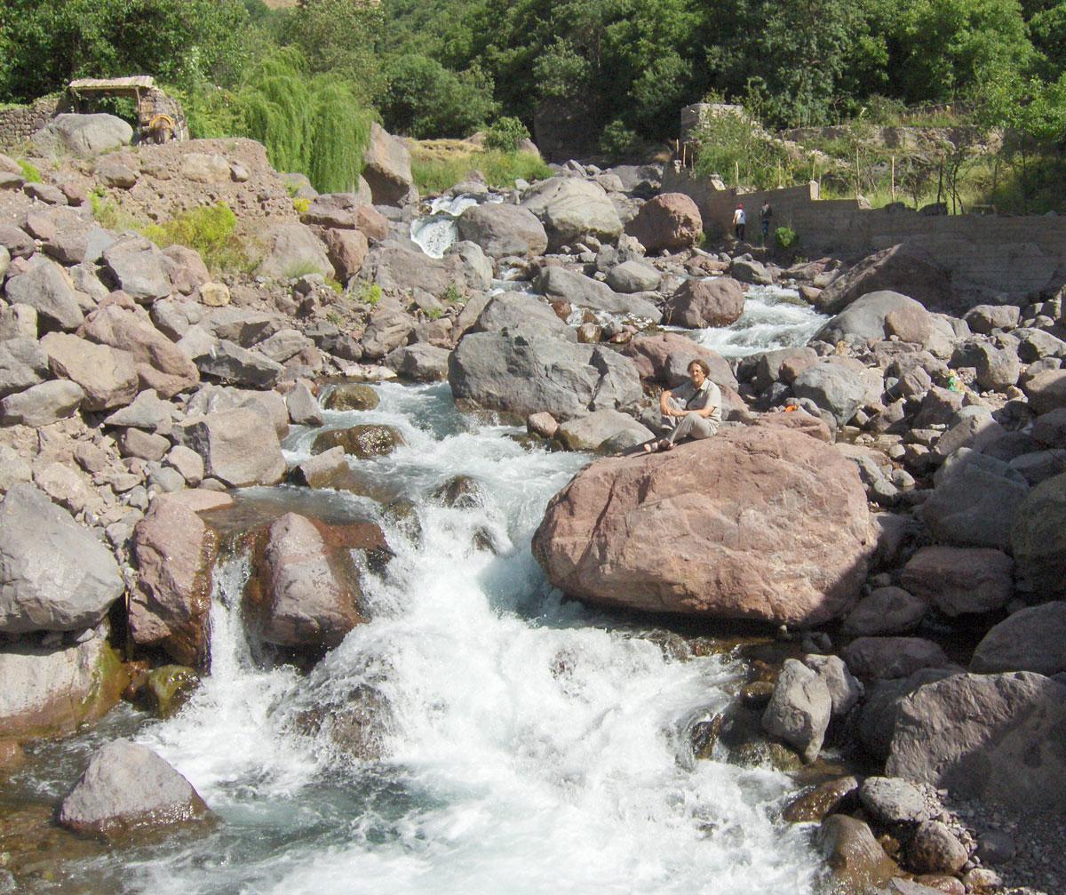 Ujutro polazimo iz Imlila za planinarski dom Toubkal u kojem ćemo prenoćiti prije uspona na najviši vrh Atlasa – Jebel Toubkal (4167 m/nv). Put nas na vodi kroz dolinu rijeke Mizane i pored sela Aremd (1945 m/nv) koje privlači našu pažnju zbog svog neobičnog izgleda i položaja na kojem se nalazi. Kuće su četvrtastog oblika ravnih krovova, zbijene na velikoj strmini okrenutoj prema rijeci. Ispod kuća nižu se jedna ispod druge mnoge terase na kojima se uzgaja voće i povrće. Prelazimo široko riječno korito gdje dvojica seljana vade šljunak. Po prelasku rijeke pravimo pauzu i osvježavamo se Jaćimovim trešnjama. Dok odmaramo nailazi nekoliko žena sa sjenom natovarenim na leđima, koje vješto preskaču s kamena na kamen prelazeći rijeku. Od rijeke dalje idemo na istok prateći utabanu stazu kojom mule prenose tovare.