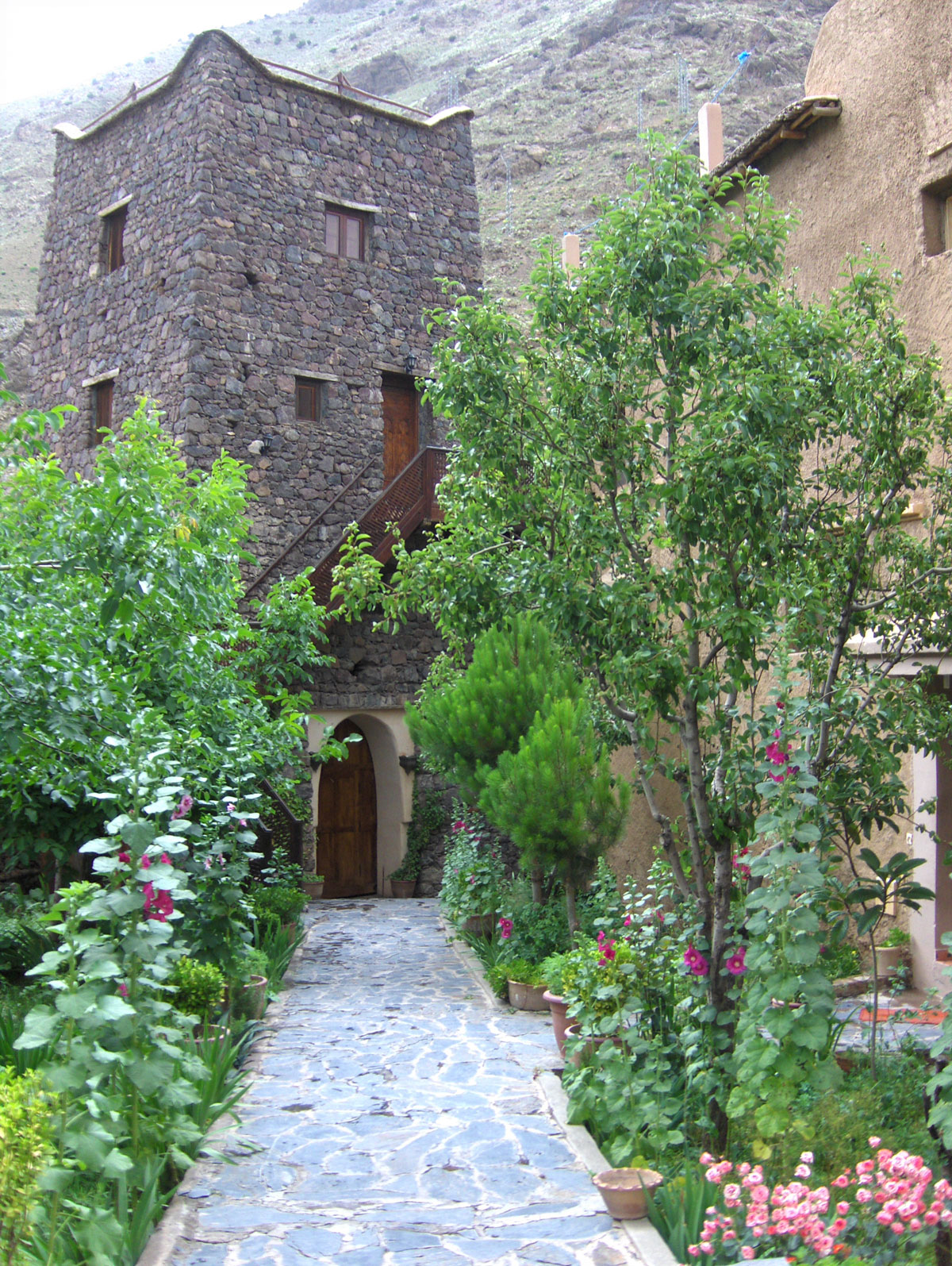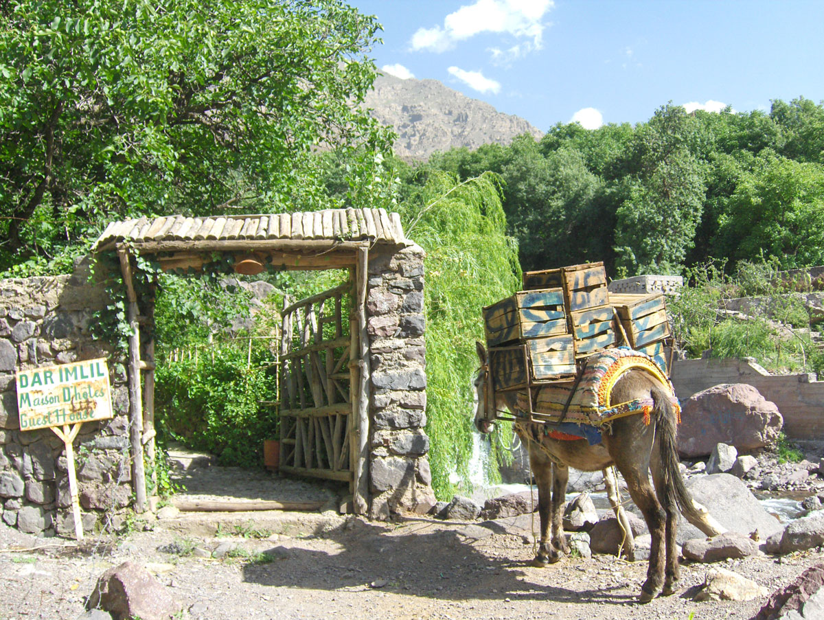 Po izlasku iz dubokog hlada šume, ubrzo stižemo u gostinsku kuću “Dar Adrar” u kojoj ćemo prenoćiti prije uspona na Atlas. Popodne nakon ručka malo smo odrijemali zavaljeni u udobnim ležaljkama na terasi kuće. Do večere vrijeme provodimo istražujući okolinu Imlila, obilazeći prodavnice sa suvenirima i čajdžinice u kojima toče tradicionalni čaj od nane i đumbira. U Imlilu i okolnim selima žive Berberi u jednostavnim malim zemljanim kućicama ravnih krovova. Većina ih govori samo berberski jezik, dok oni s više doticaja s drugima govore arapski, a eventualno nešto francuskog. Za Berbere kažu da su ponosan narod, dosljedan i pomalo neukrotiv, koji želi sačuvati svoj identitet i neće se odreći svojih običaja i svjetonazora i po mnogo čemu se razlikuju od Arapa koji su više prilagodljiviji. U suštini je to dobroćudan narod i veoma interesantna zajednica, a njihovo poznavanje planina od neprocenjivog je značaja za planinarenje na Atlasu. U kontaktu s stanovništvom naišli smo na iskrenu gostoljubivost i predusretljivost i boravak u Imlilu ostaće nam u lijepom sjećanju.