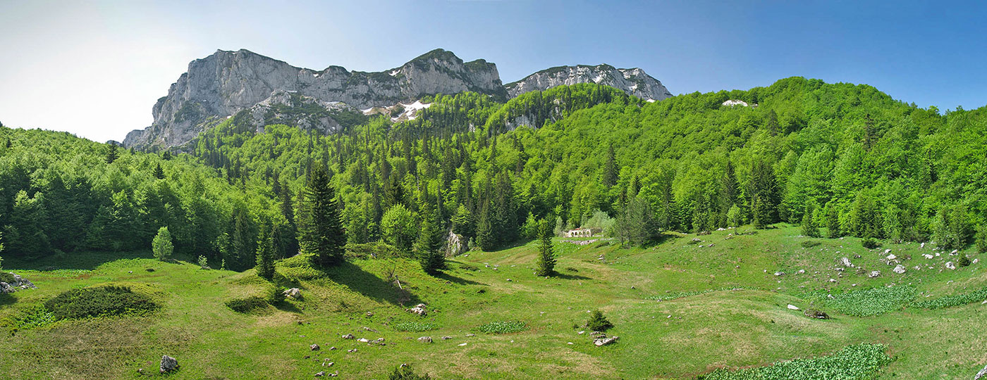 Naslovna slika: Treskavica, Kozja luka (1498 m/nv). Na slici u pozadini su Dikonjina greda i Zaviti kamen (1892 m/nv). Ovdje je nekad bio pl. dom “Josip Sigmund” jedan od najljepših domova u planinama ex-SFRJ a uništen je u ratu (1992. – 1995. god.).