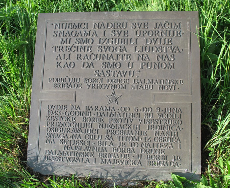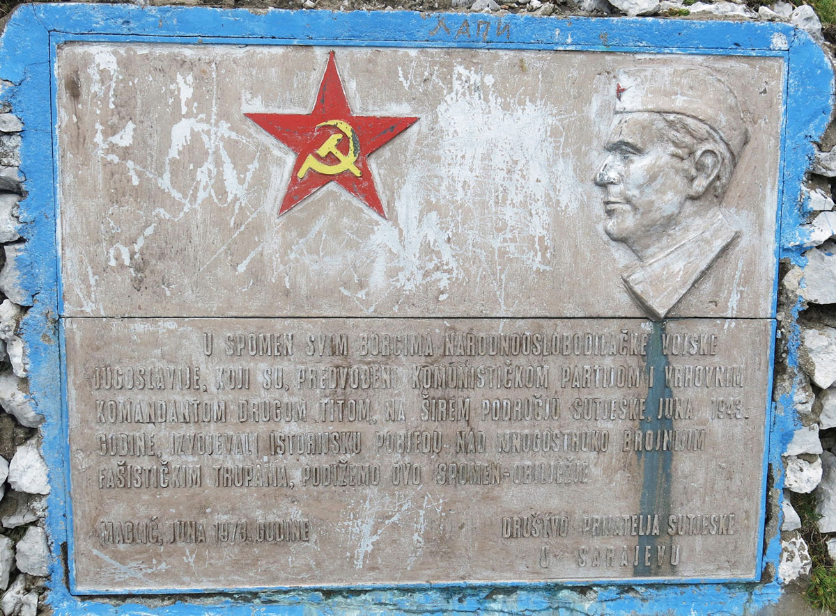 Obilježavanje značajnih mjesta i osoba iz narodno-oslobodilačkog rata i pete neprijateljske ofanzive datira od 1949. godine, kada je izgrađena zajednička Spomen-kosturnica u kojoj su pohranjeni posmrtni ostaci 840 boraca poginulih u bitki na Sutjesci. Ona više ne postoji, jer su posmrtni ostaci poginulih boraca preneseni u novu Spomen-kosturnicu, koja je u sklopu memorijalnog kompleksa bitke na Sutjesci. Podignuta su mnoga spomen-obilježja u Tjentištu i na širem planinskom prostoru Zelengore i Maglića. Među spomen-obilježjima središnje mjesto zauzima Spomen-kosturnica i monumentalni spomenik posvećen svim borcima Narodnooslobodilačke vojske Jugoslavije koji su učestvovali u legendarnoj bitki na Sutjesci, Spomen-dom i Muzej u Tjentištu, spomenik Drugoj dalmatinskoj udarnoj brigadi na Donjim Barama, spomenik Četvrtoj proleterskoj crnogorskoj udarnoj brigadi na Ljubinom grobu, spomenik na grobu Narodnog heroja Save Kovačevića na Krekovima, spomenik na grobu Narodnog heroja Nurije Pozderca na Dragoš-Sedlu, na mjestu pogibije Dr Sime Miloševića i Ivana Gorana Kovačića kod sela Vrbnica, na mjestu ranjavanja Josipa Broza Tita na Ozrenu, na najvišem vrhu BiH – Magliću i dr.