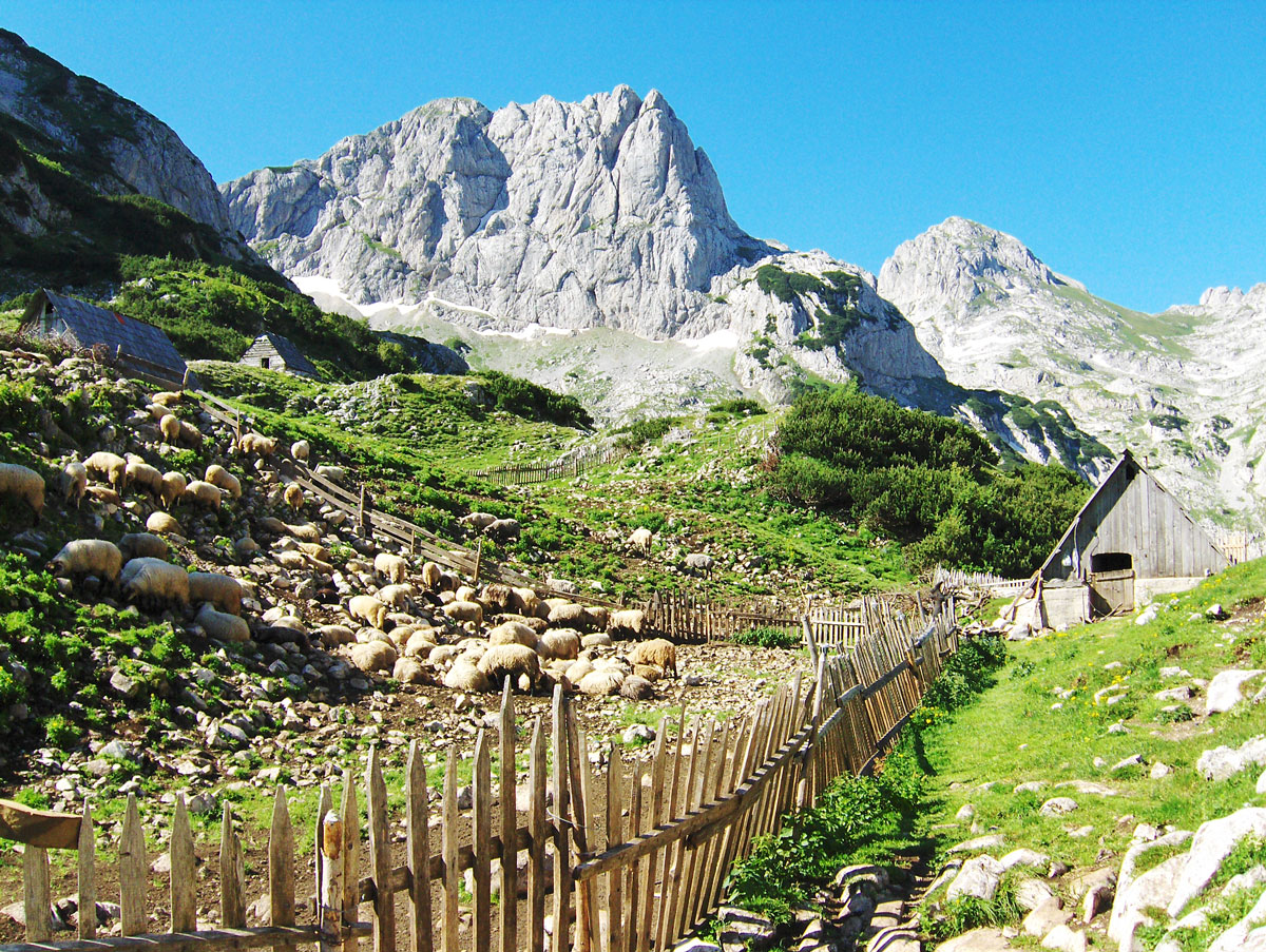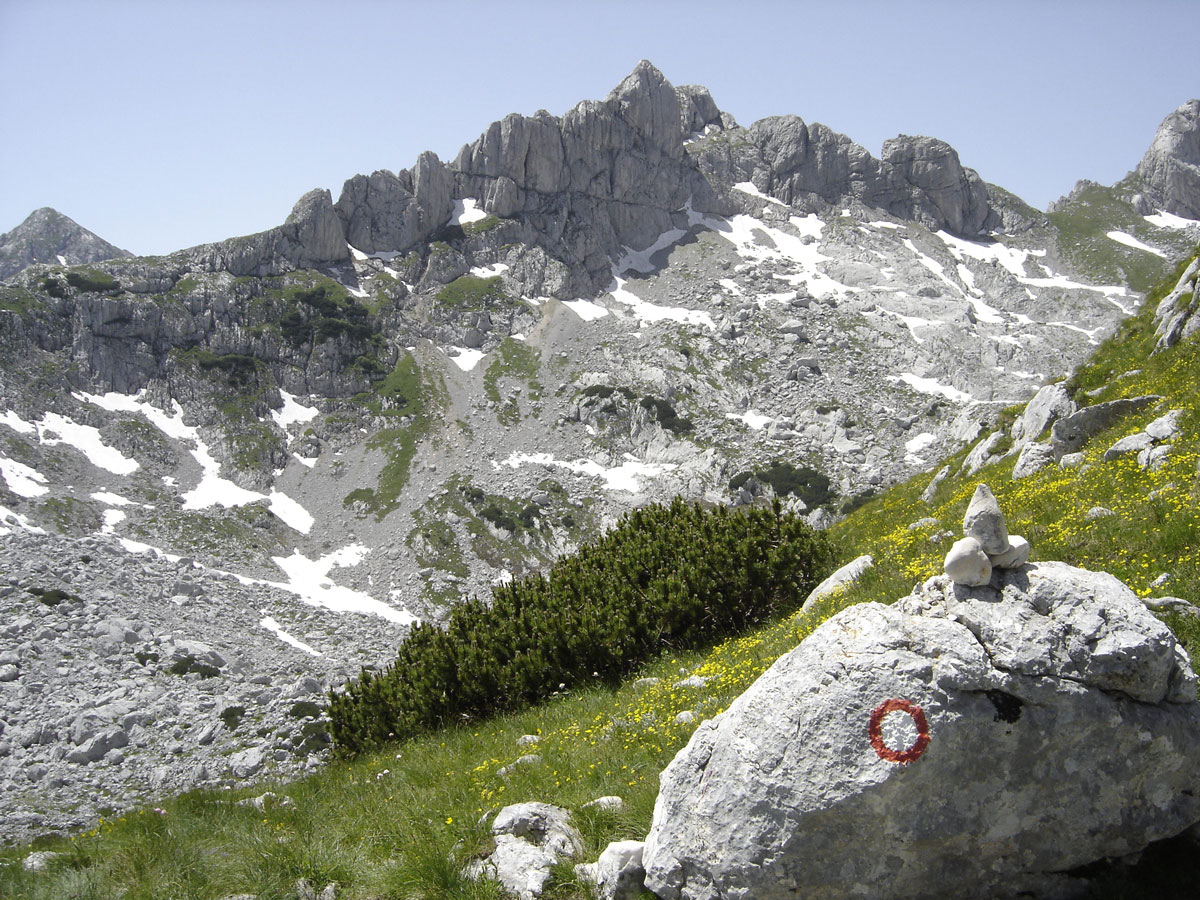 Naslovna slika: Durmitor, pogled na vrhove slijeva nadesno: Minin bogaz (2387 m), Lučin vrh (2396 m), Bobotov kuk (2523 m) i Bezimeni vrh (2487 m)