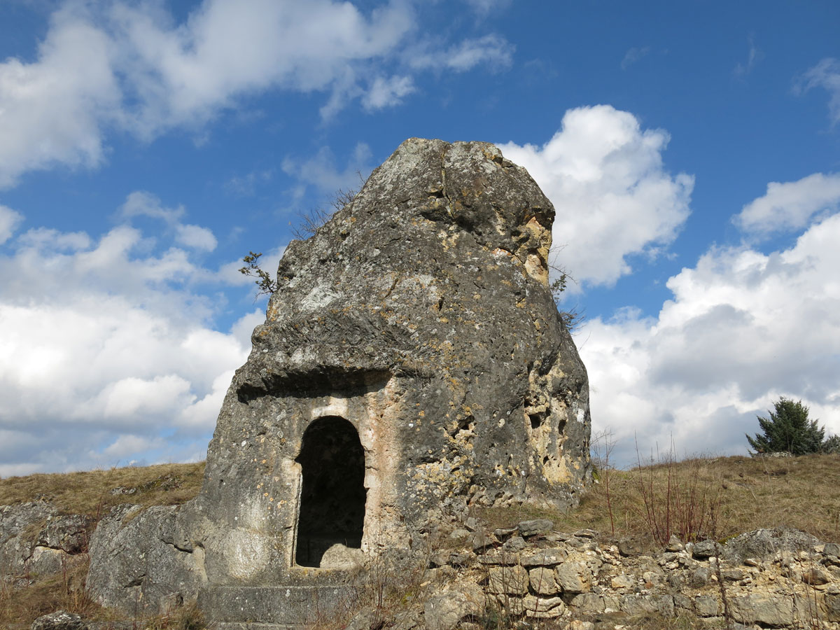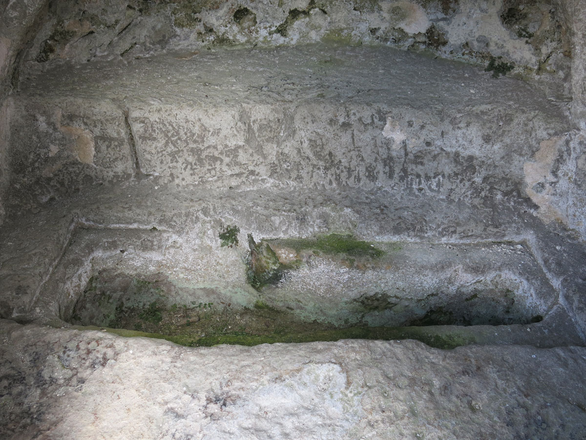 Istočna i zapadna strana ćelije su ravno klesane, južna je ukošena, a sjeverna završava zaobljeno. Svod je u vidu četvrtlopte i blago pada prema sjevernoj strani. Unutrašnji zidovi su grubo isklesani sa vidnim tragovima dlijeta i nedotjerani. Pod je kameni, od “žive” stijene. Na sjevernom i zapadnom zidu ćelije uklesane su klupice. Iznad klupice, u sjevernom zidu stijene, isklesana je plitka, trougaona niša. Grobnica je uklesana u središtu ćelije također u “živu” stijenu. Orijentacija grobnice je istok-zapad. Na površini ima oblik pravokutnika, dimenzija oko 2,0 x 0,70 m. Pokrovne ploče nema. Nije poznato ko je bio sahranjen u grobnici. Na južnoj strani se primjećuju temelji nekog značajnijeg arhitektonskog objekta koji je bio dug oko 16 m. Na zapadnoj strani objekta gdje je bio ulaz jasno se raspoznaje kameniti prag.