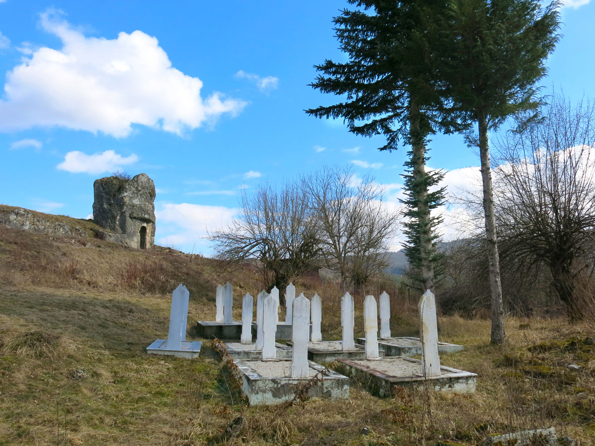 Južno od stijene s grobnicom (oko 20-25 m) nalazi se mezarje (groblje). Tokom proučavanja lokaliteta 1976. i 1977. godine ekipa stručnjaka je konstatovala ostatke zapuštenog islamskog groblja, opasanog zidom od slaganog kamenja, zvanog Ibrahim-begovo groblje. Narod pamti da je zid bio visok oko 1,5 m i da je na zapadnoj strani bila kapija sa kamenim dovratnikom i nadvratnikom u obliku luka. U šikari pored razbacanih ostataka izlomljenih nišana nalaze se vjerojatno i ostaci jednog oktogonalnog turbeta. U groblju su se sahranjivali članovi vlastelinske obitelji Čengić – begova Ratajaca, a u turbetu je sahranjena žena Osman-paše Čengića, za kojeg se priča da je sa bratom Ahmed-pašom sagradio kulu od devet katova u Ratajama.