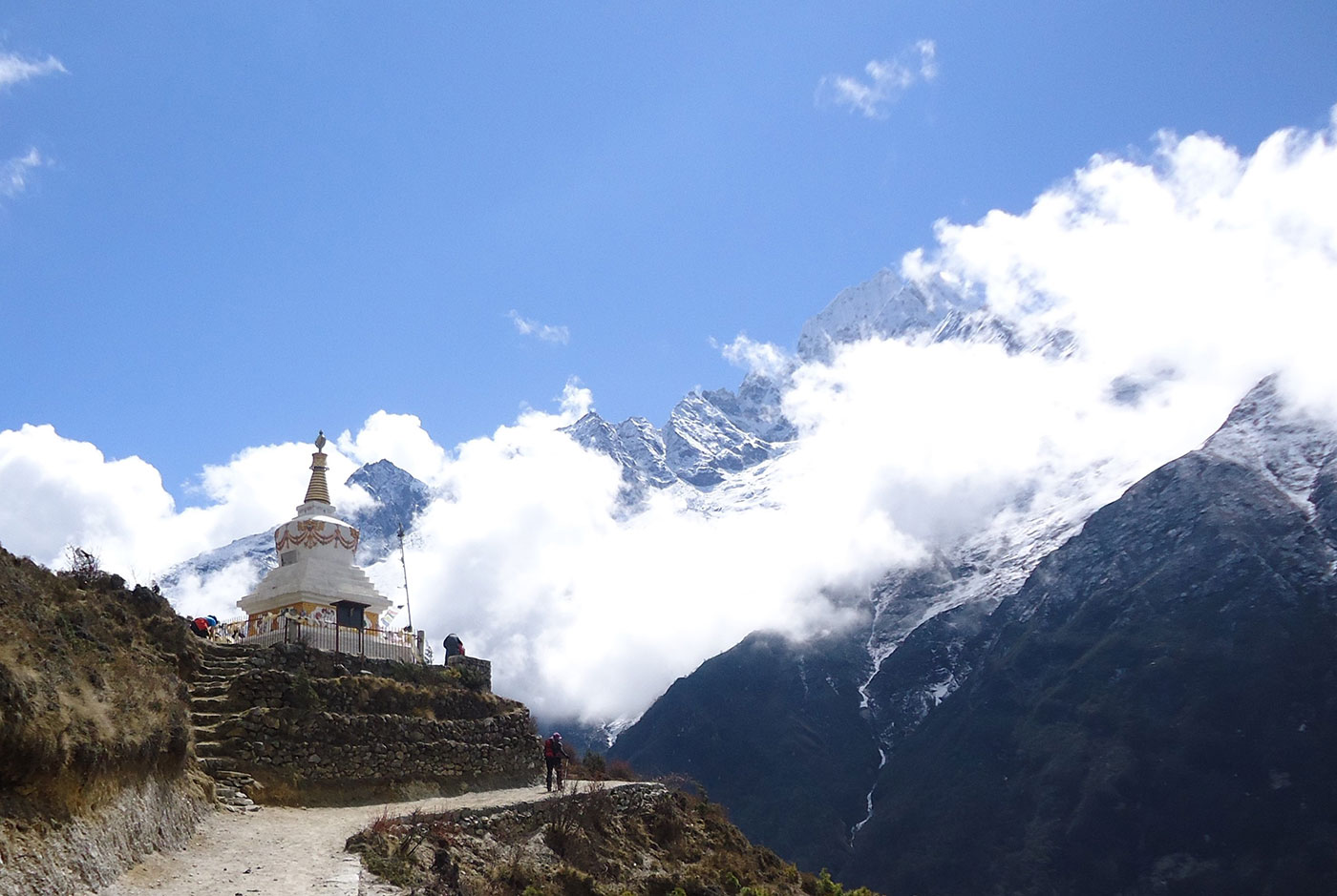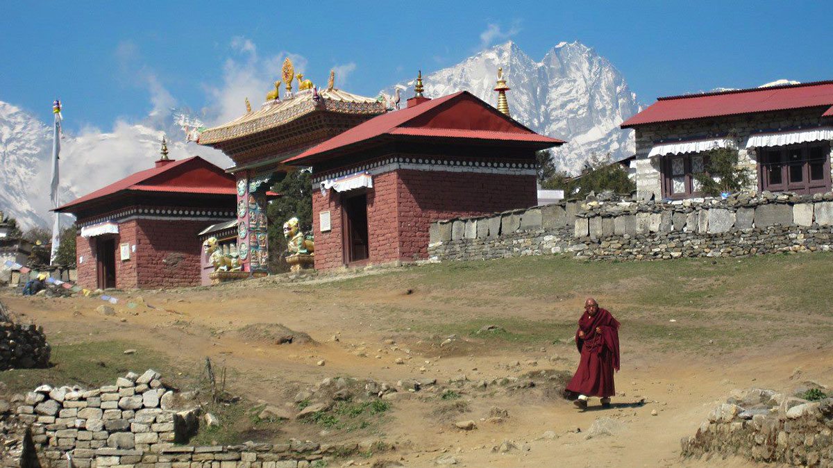 Samostan je u prošlosti nastradao u potresu i požaru. Iznova je podizan i u njemu danas živi 60 budističkih monaha. Zanimljivo je spomenuti da je u samostanu u svojoj ranoj mladosti kao monah živio Tenzing Norgay (1914. – 1986.), legendarni osvajač Mount Everesta. Oko samostana je nekoliko lodževa i čajdžinica, u jednoj od njih na zidu stoji majica sa potpisima članova exp. ”Island Peak 2012”. Među njima zapazio sam imena Daliborke Strika iz Sarajeva i Semira Kardovića iz Rožaja, moji prijatelji sa planina. Sa platoa samostana se pruža lijep pogled na vrhove: Mount Everest, Nuptse, Lhotse i Ama Dablam. Od samostana se spuštamo u selo Deboche (3750 m/nv) i pred sami mrak stižemo u ”Rivendell Lodge” u kojem ćemo večeras noćiti.