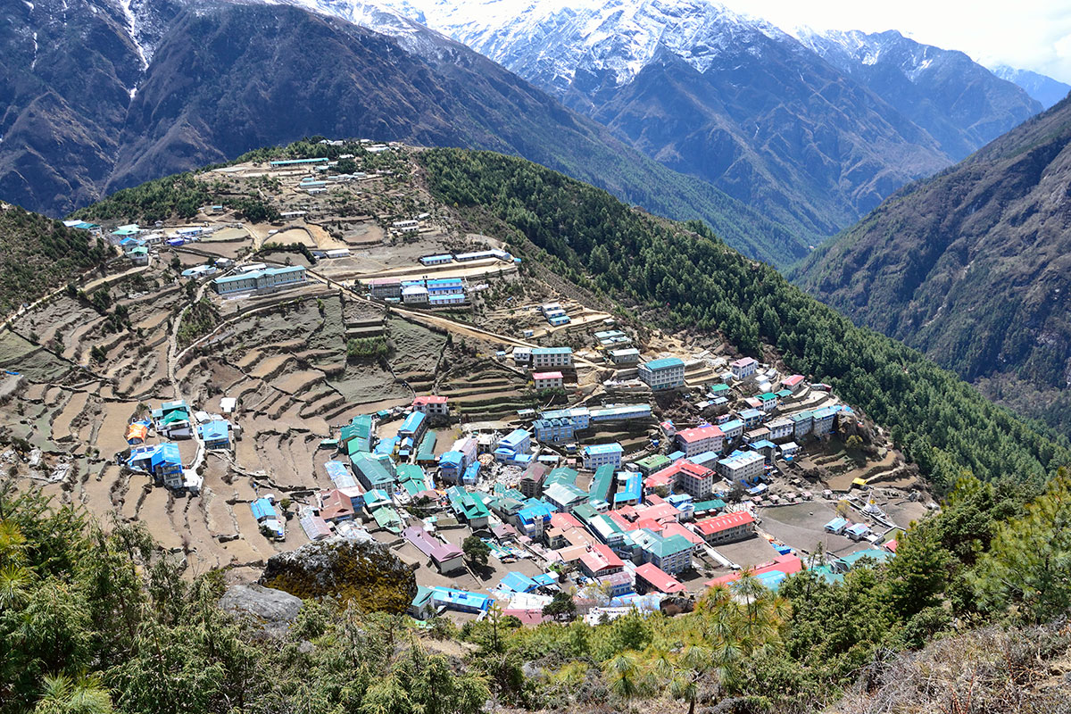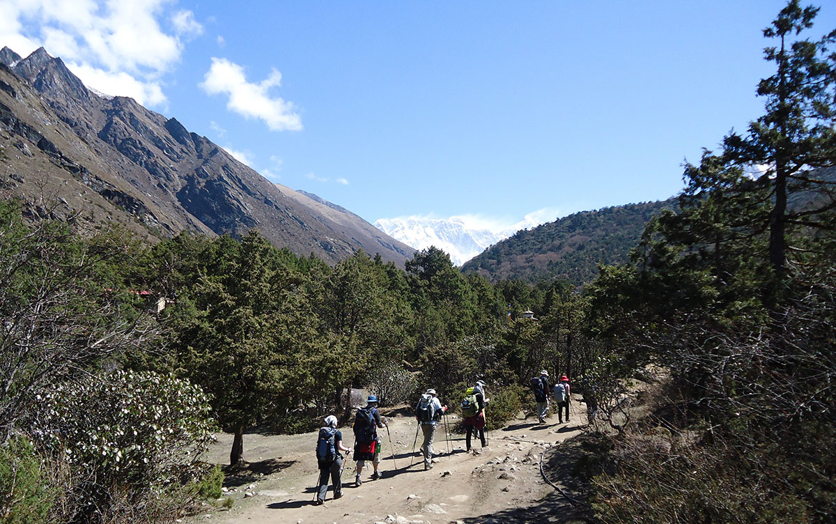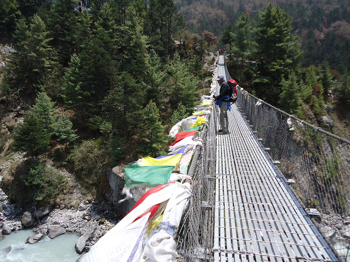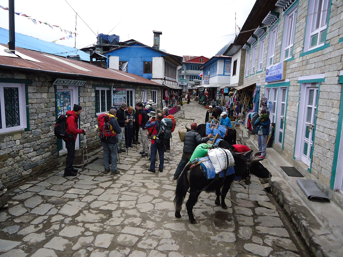 Nakon kiše koja je cijele noći padala osvanulo je lijepo sunčano jutro. Doručkujemo i polazimo na pješaćenje. Današnji plan je da stignemo u Namche Bazar (3440 m/nv). Put nas vodi uzvodno dolinom rijeke Dudh Koshi. Već od ranog jutra na putu su mnogobrojni turisti, trekkeri, alpinisti, nosači i dječica koja veselo jure u školu kilometrima daleko.