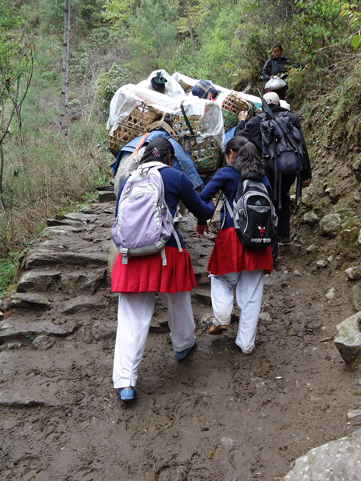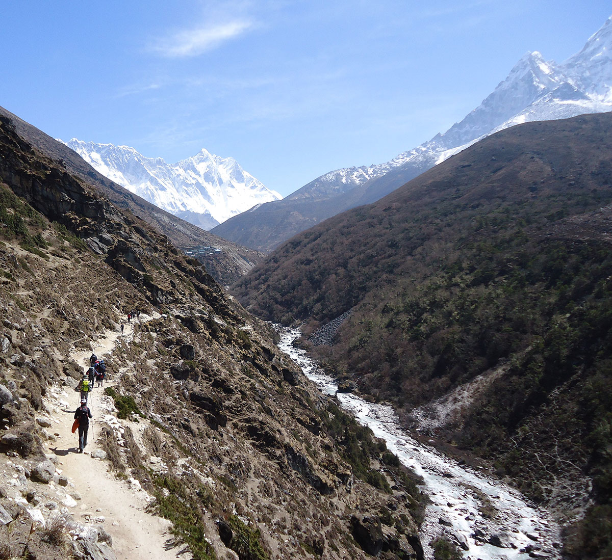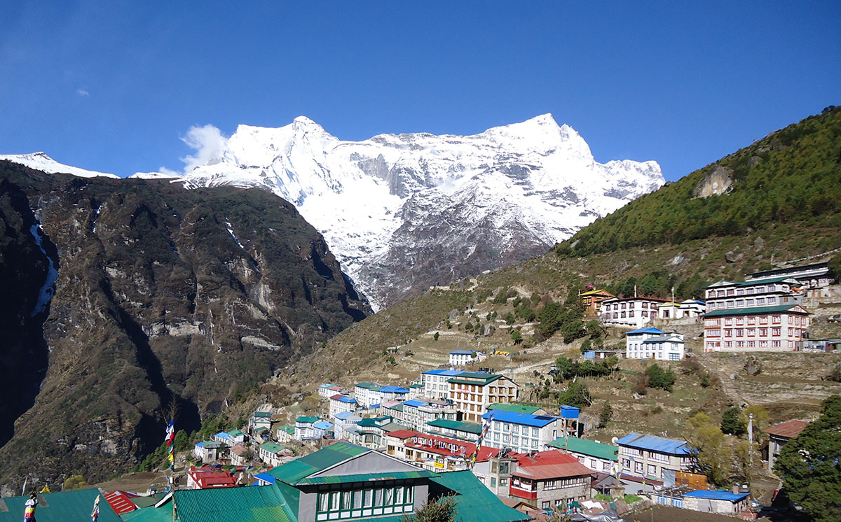 Nakon kiše koja je cijele noći padala osvanulo je lijepo sunčano jutro. Doručkujemo i polazimo na pješaćenje. Današnji plan je da stignemo u Namche Bazar (3440 m/nv). Put nas vodi uzvodno dolinom rijeke Dudh Koshi. Već od ranog jutra na putu su mnogobrojni turisti, trekkeri, alpinisti, nosači i dječica koja veselo jure u školu kilometrima daleko.