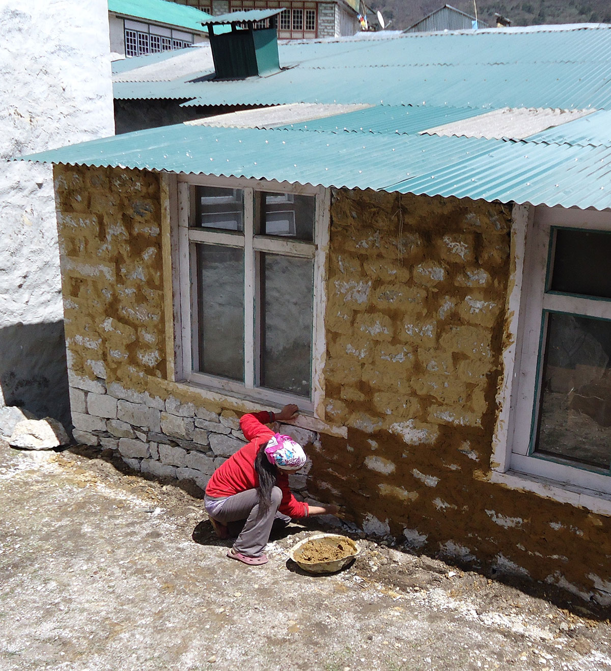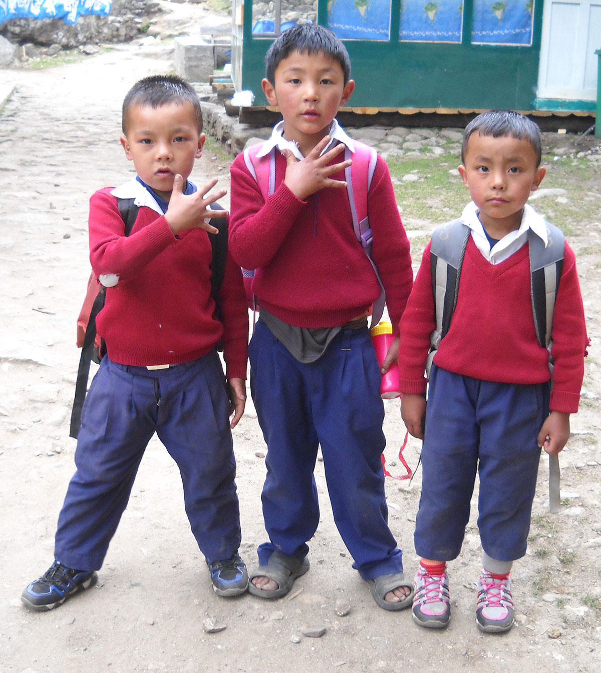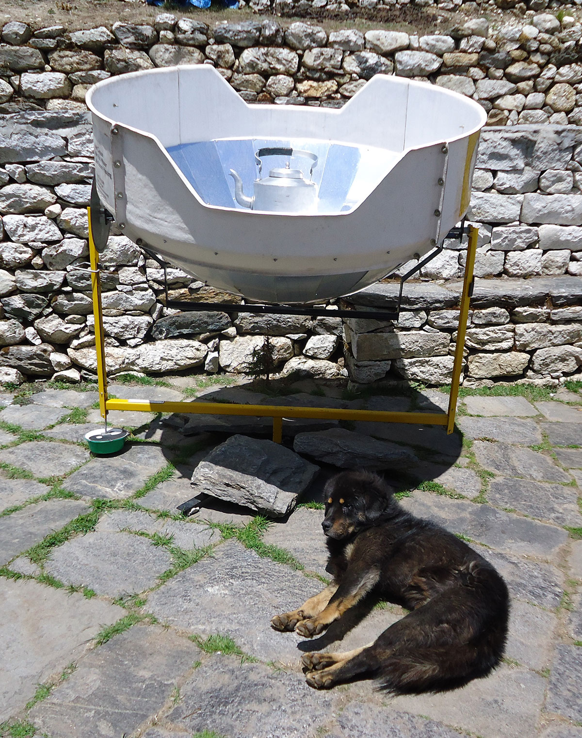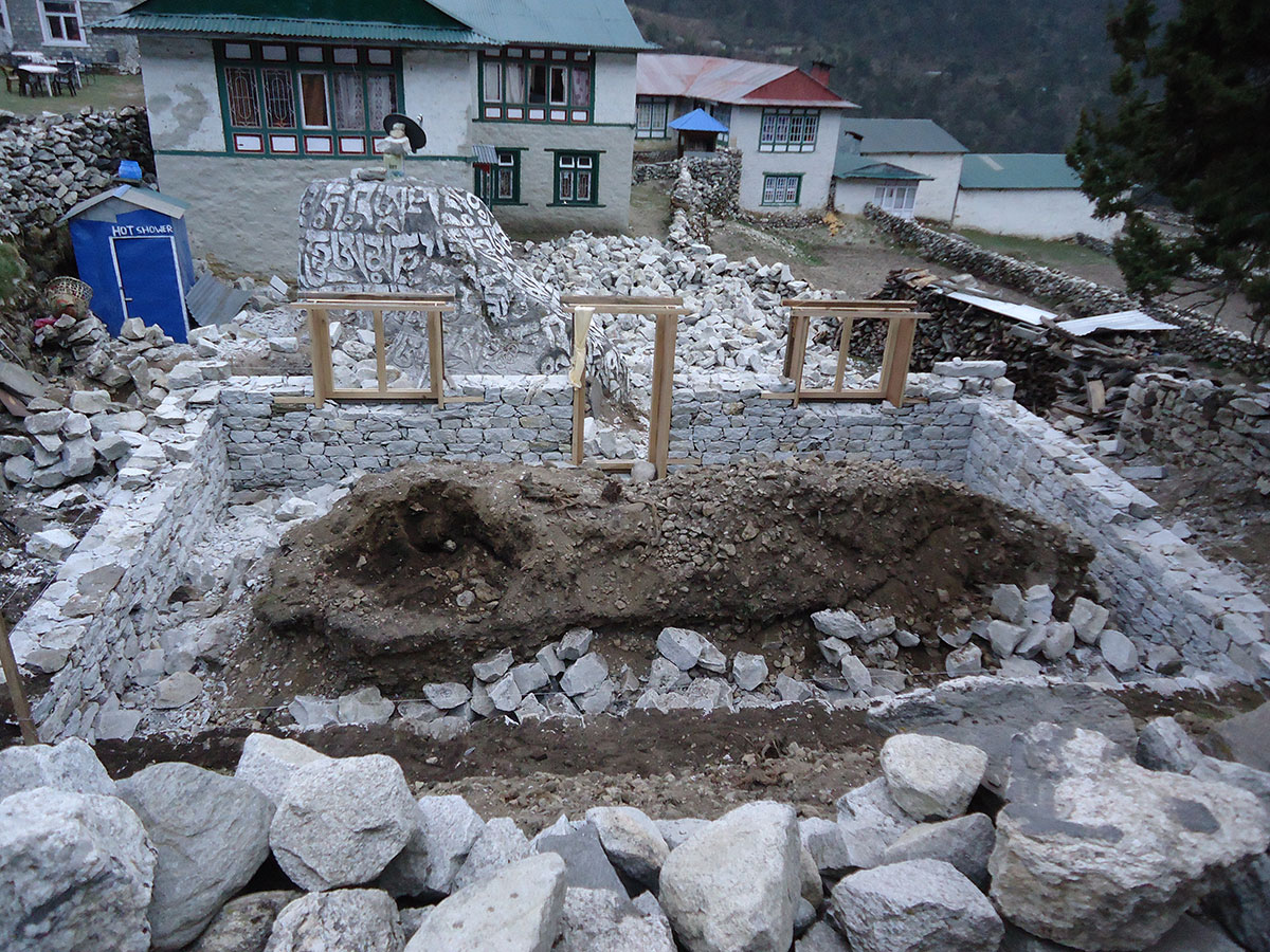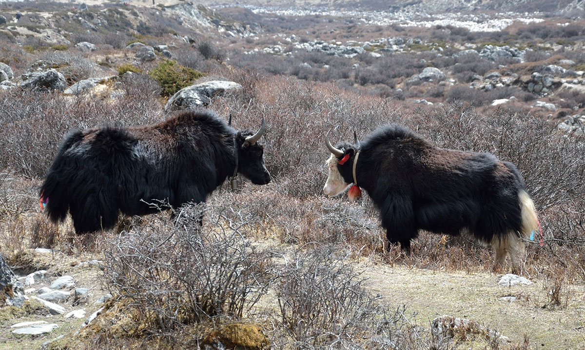 Ujutro me budi sunce i prvo što sam ugledao sa prozora sobe su bili snježno bijeli vrhovi: Nuptse, Mount Everest, Lhotse i Ama Dablam koji su blistali na plavom nebu bez ijednog oblačka. Nije bilo čak ni uobičajene ”perjanice” koja se vječno vije oko najvišeg vrha svijeta. Uzimam fotoaparat i bilježim ovaj divan prizor. Već je peti dan našeg boravka u Himalajima. Nakon doručka pakujemo ruksake i napuštamo Deboche. Put vodi kroz crnogoričnu šumu mjestimično prošaranu procvjetalim grmovima magnolie. Vremenske prilike su se ustalile i nema više uporne i dosadne kiše. Prijepodne nas prati lijepo i sunčano vrijeme, a poslijepodne na nebu se navlače oblaci i magla. Noći su vedre obasjane mjesečinom i umjereno hladne. Iz dana u dan lagano privikavamo naš organizam na visinu. Vodimo računa da ne dehidriramo i često pijemo vodu, čaj, voćni sok, supu. U prosjeku dnevno u organizam unosimo 3 do 4 litre tekućine. Dehidrirani organizam je izložen opasnosti od visinske bolesti i toga se svi pomalo pribojavamo. Prelazimo viseći most na rijeci Imja Khola i stižemo u selo Pangboche (3930 m/nv). Smjestili smo se u lođ “Higland Sherpa Resort” i odlazimo na ručak. Jela se sastoje od raznog povrća, riže, krompira i piletine sa začinima. Fascinira nas brzina posluživanja, samo što smo naručili jelo je već na stolu! Poslije ručka odlazimo u šetnju. Na izlazu iz sela je potok sa nekoliko molitvenih mlinova. Na potoku zatičemo mlađu ženu kako pere ćilim i dječaka koji hladnom vodom iz potoka pere kosu kao u sred ljeta. Na povratku u selo prolazimo uskim puteljkom između kuća ograđenih niskim kamenim zidovima. U dvorištima kuća se odvija svakodnevni život, žene peru suđe i rublje a djeca skakuću i igraju se. U jednom dvorištu pažnju nam privlače dvojica majstora koji vješto klesaju kamen za zidanje nove kuće. Malo dalje niz puteljak jedna žena svježom balegom od jaka popunjava šupljine u kamenom zidu kuće. Pred mrak stižemo u lodž. Nakon večere ostajemo u trpezariji da se uz vruć čaj grijemo pored peći koju je domaćica naložila osušenom balegom od jaka. Sa zanimanjem razgledamo vitrinu sa praznim bocama za kisik. Na svakoj od boca je ispisana godina a najstarija je iz 1952.