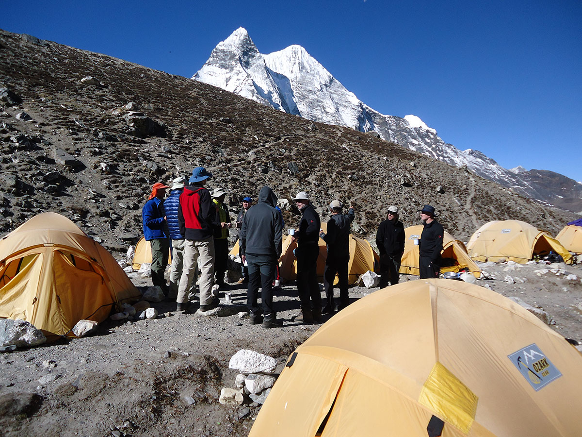 Tokom hodanja svo vrijeme ispred nas uzdizaće se najviši vrh Himalaya i ujedno na svijetu – Mount Everest (8848 m). Noćenje je u lokalnim lodževima, a po dolasku u bazni kamp prelazimo pod šatore. Sva oprema se transportuje do baznog kampa na leđima jakova. Bazni kamp je smješten na 5080 metara nadmorske visine. Potrebno je iskustvo u korišćenju zimske opreme za penjanje i bivakovanje. Završni uspon na Island Peak donosi sve što se očekuje od Himalaja: savlađivanje visinske razlike veće od 1000 metara kroz stjenovite odsjeke, penjanje u navezi kroz glečer, uspon u smrznutom snijegu i ledu nagiba 60%, penjanje uz oštri greben do vrha i sam vrh na kome tri čovjeka već prave gužvu.
