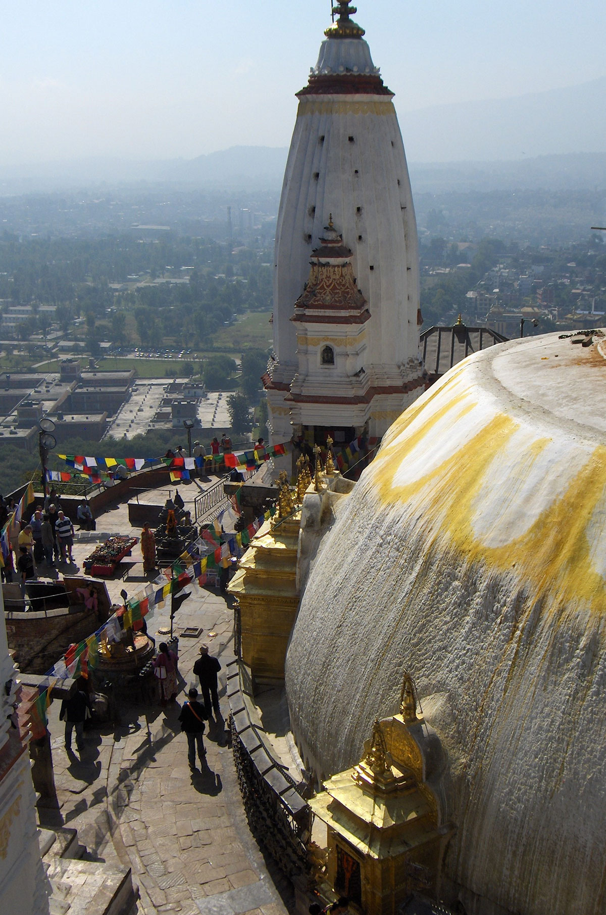 Prijepodne smo prvo obišli Swayambhunath / Monkey temple (Hram majmuna) religiozni kompleks u čijem jednom dijelu žive majmuni. Hram je smješten na brežuljku sa kojeg se pruža širok pogled na Kathmandu. Do Budine stupe, na vrhu brežuljka, gdje se nalazi tibetanski samostan sa muzejom i knjižnicom osim automobilom može se doći i pješke penjući se uz 365 stepenika.
