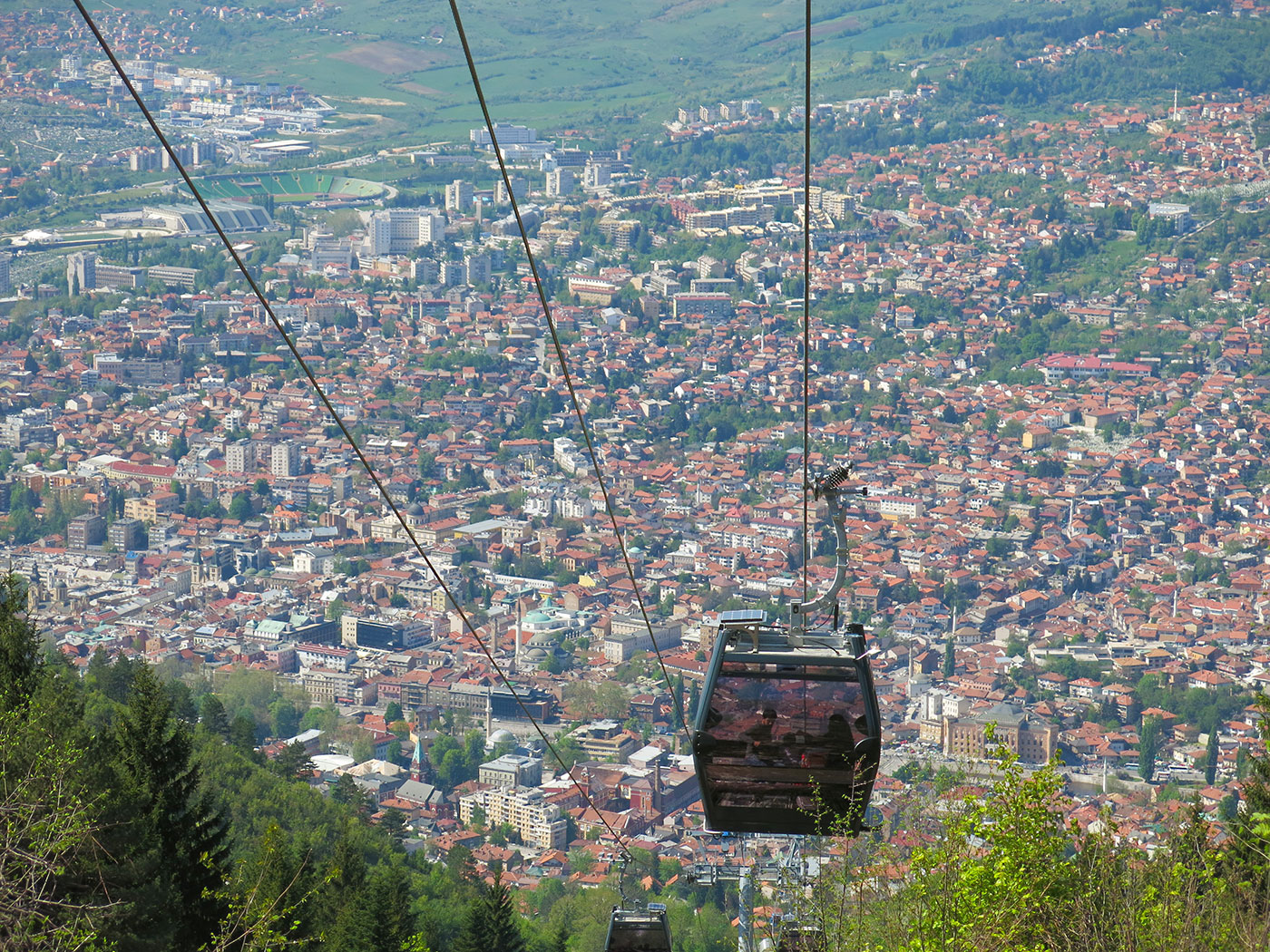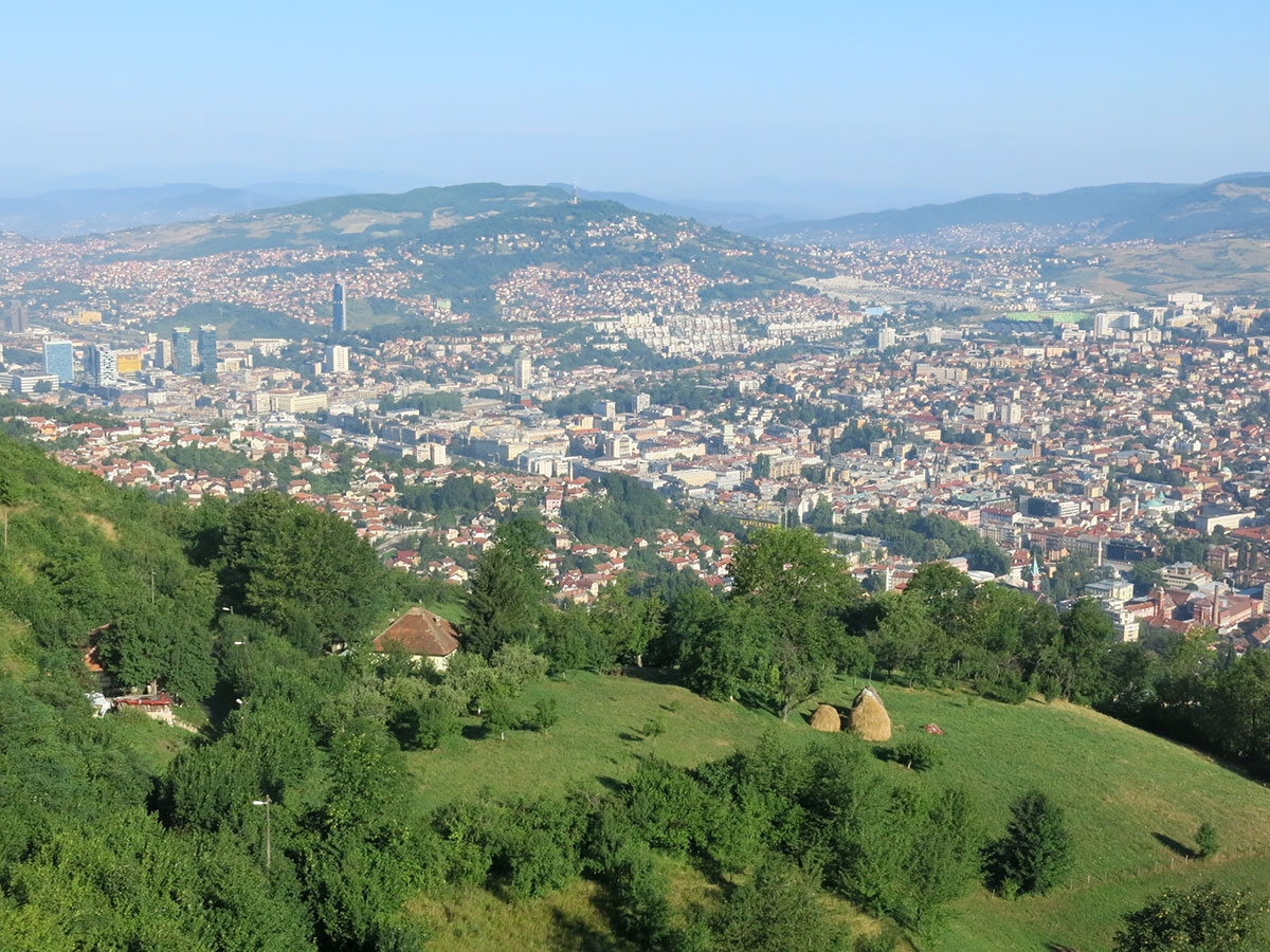 Naslovna slika: Zaštićeni pejzaž ”Trebević”, panorama Sarajeva, pogled iz kabine nove žičare