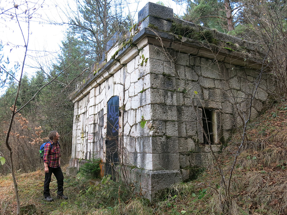 Od raskršća na Ravni izgrađena je posebna brdska cesta za izvlačenje artiljerijskog oruđa na položaj. Cesta prolazi sjevernim padinama pored vrela Dobra voda i dugačkim serpentinama izlazi na vještački zaravnjeni plato pod vršnom piramidom Trebevića.