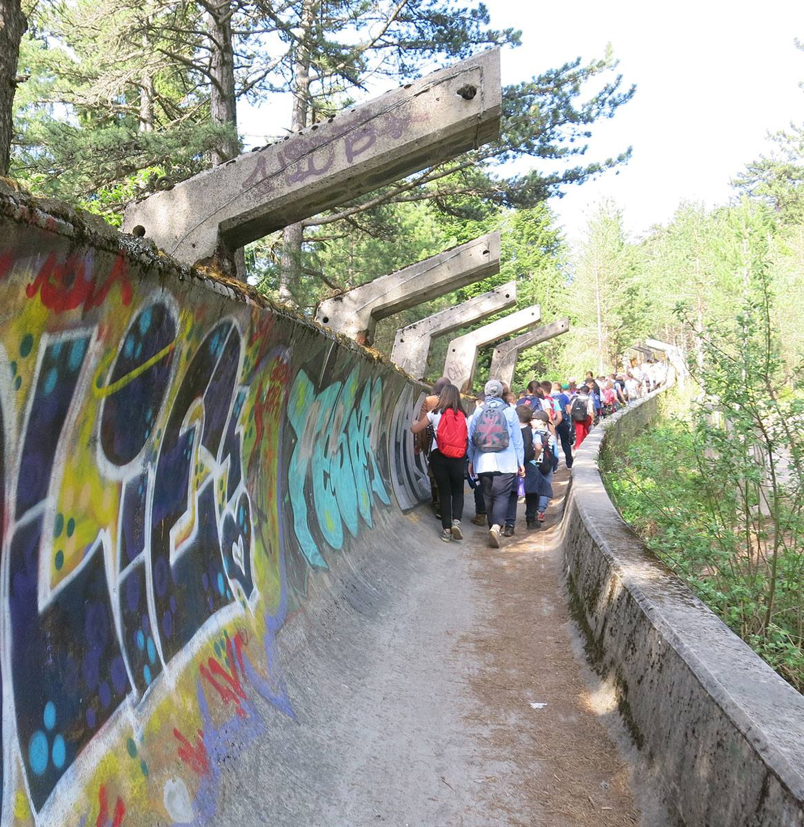 Trebević je jedna od četiri sarajevskih olimpijskih planina. Za održavanje takmičenja u okviru 14. zimskih olimpijskih igara Sarajevo 1984 na sjevernim padinama Trebevića izgrađena je kombinirana bob i sankaška staza od armiranobetonske konstrukcije. Bila je to jedina staza takva vrsta u jugoistočnoj Europi. Time je oživljena stara tradicija Sarajlija u sankanju na ligurama (saonice specifične izrade i izgleda). Staza je uništena u ratu 1992. – 1995. godine i do danas nije obnovljena. Mnogi izletnici šetaju dijelovima ove staze a povremeno se organizira i takmičenje u biciklizamu i skateboardu.