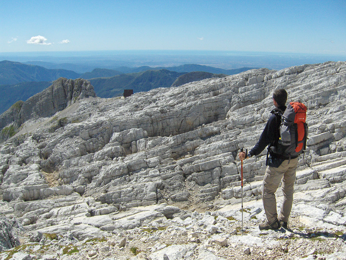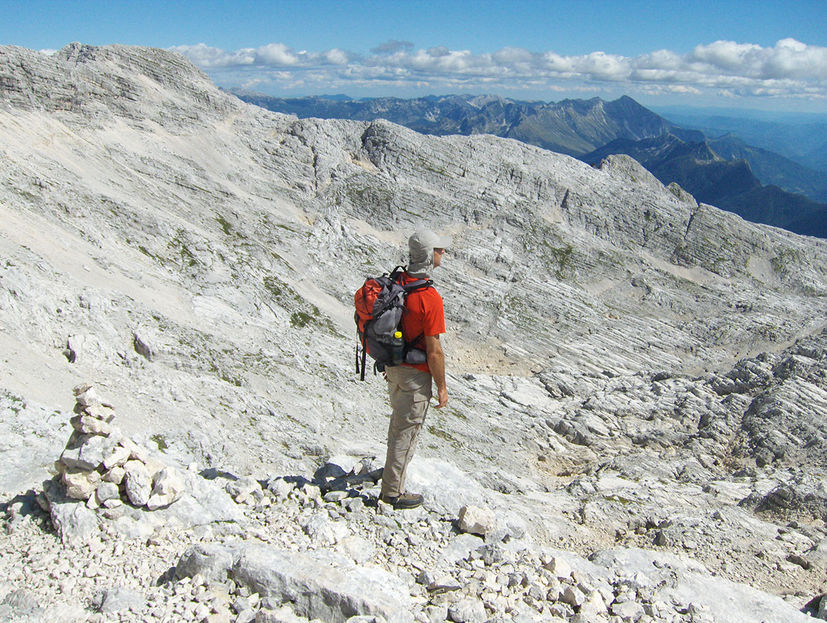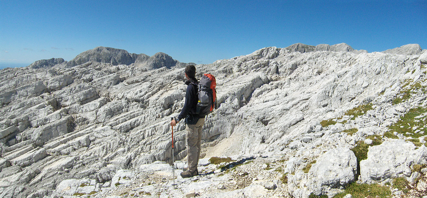 Naslovna slika: Julijske Alpe, Planina Kanin / Montagna Canin, pogled na vrh Jôf di Montásio / Montaž (2753 m) – na italijanskoj strani Julijskih Alpa